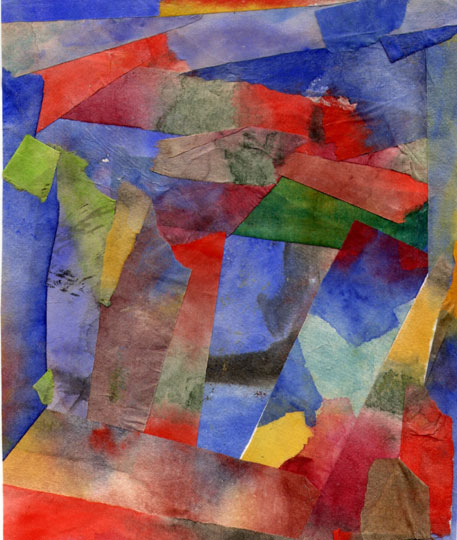 collage papiers de Chine aquarellés 29x11